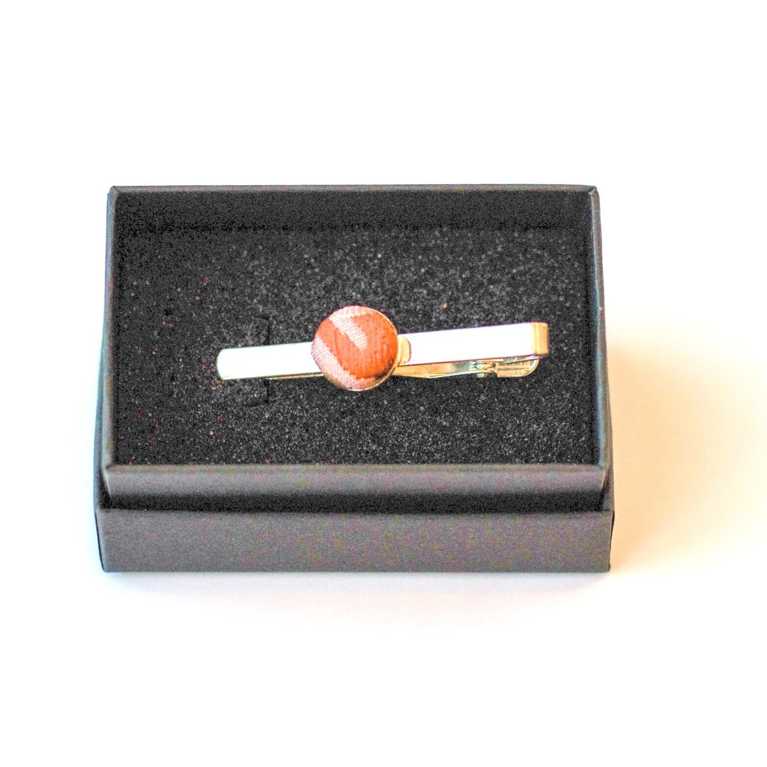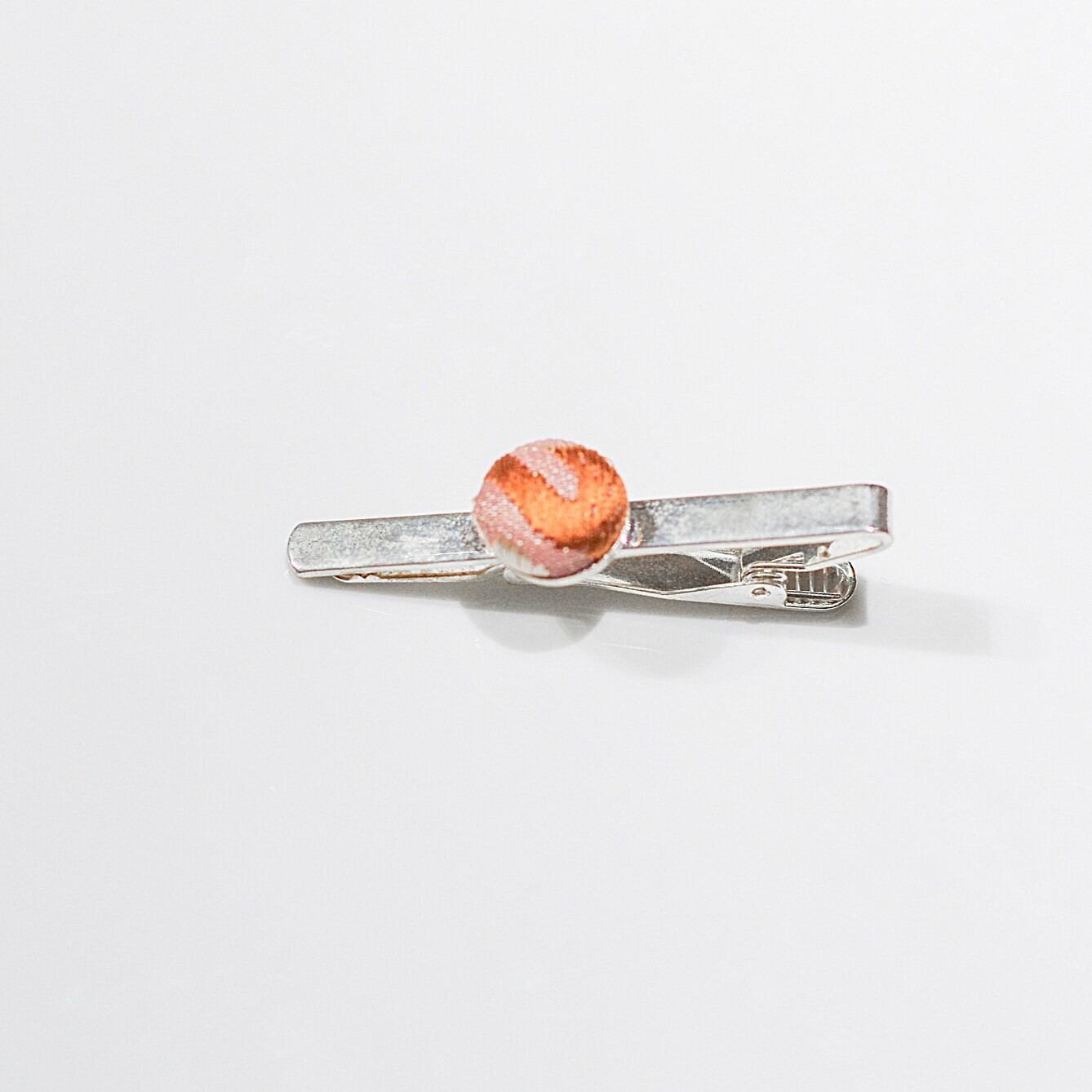 西陣織の風合いと、絹糸ならではのやさしい光沢がさりげなく映えるネクタイピン。