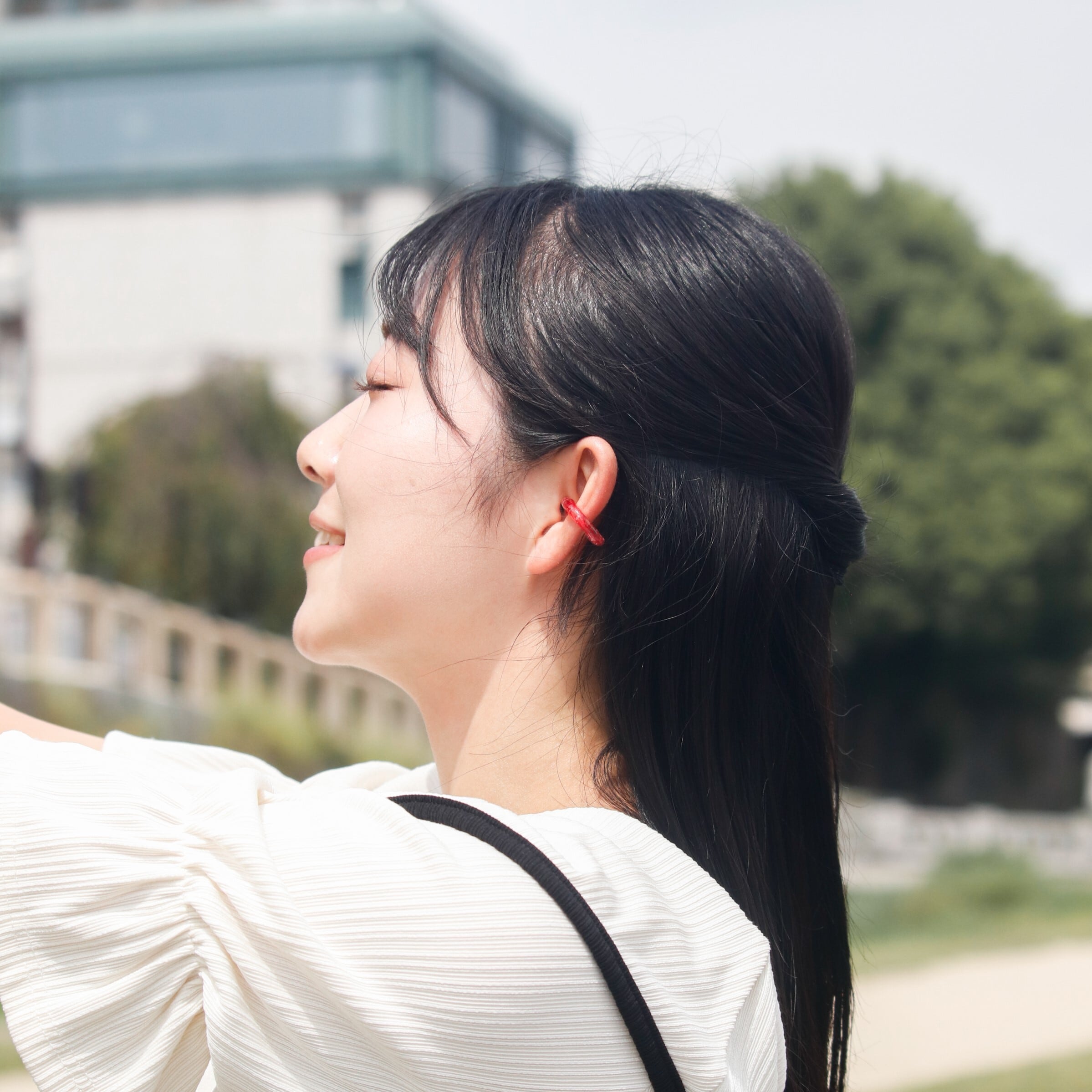 ノンホールで、ピアスやイヤリングが苦手な方でも着けていることを忘れるほどの軽やかさ。金属アレルギーの方にも安心してお使いいただけます。